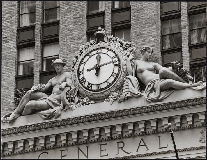 [Detail of clock and sculpture on the Helmsley Building, 230 Park Avenue.]
