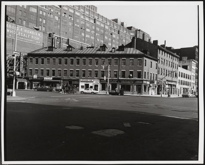 [Looking northeast toward the intersection of Ninth Avenue, Hudson Street, and West 14th Street.]