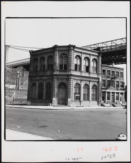 [Looking north on Washington Street from Front Street to the Manhattan Bridge.]