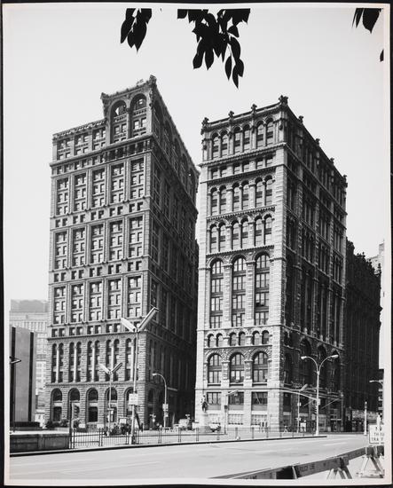 [Pace University (originally the New York Times Building) at 41 Park Row and Potter Building at 38 Park Row.]