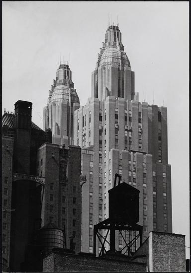 [Looking northwest toward the towers of the Waldorf-Astoria Hotel, 301 Park Avenue.]