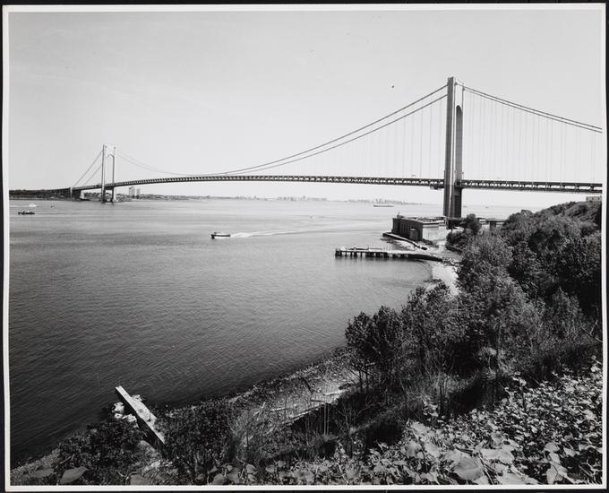 Verrazano Narrows Bridge. Construction view from John Paul Jones Park