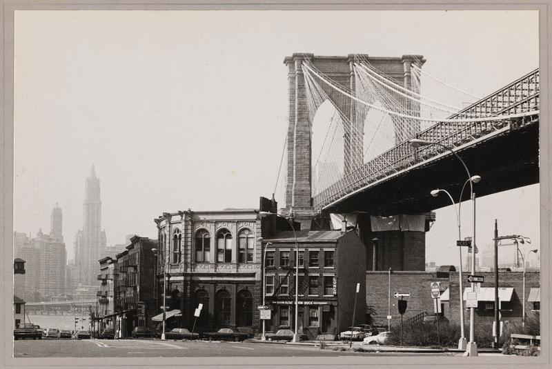 [Looking west on Old Fulton Street across the East River to Lower Manhattan.]