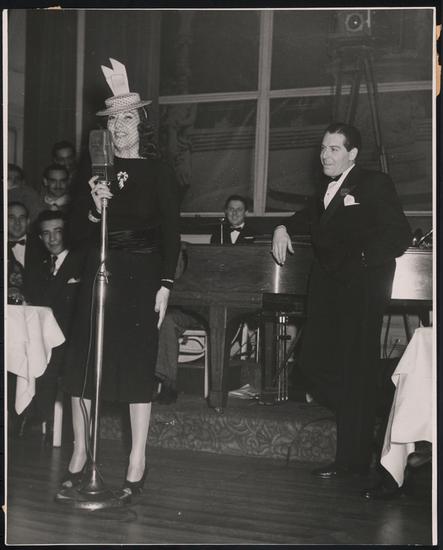 [Sophie Tucker at Versailles Cafe for the Mirror-Ted Friend award presentation.]