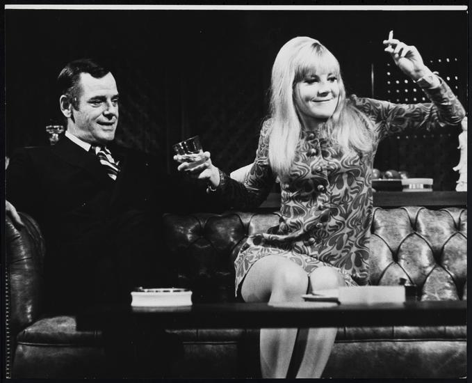 [Gig Young as Robert Danvers and Amanda Reiss as Marion in "There's a Girl in My Soup".]