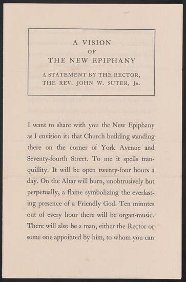 The Church of the Epiphany in the City of New York requests the honor of your presence at the Dedication of the New Building