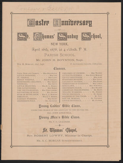 53rd Street and 5th Avenue. St. Thomas Protestant Episcopal Church, Sunday School room.