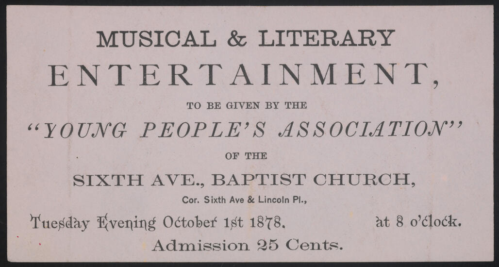 Monthly Sociable of the Young People's Association of the Fort Greene Presbyterian Church