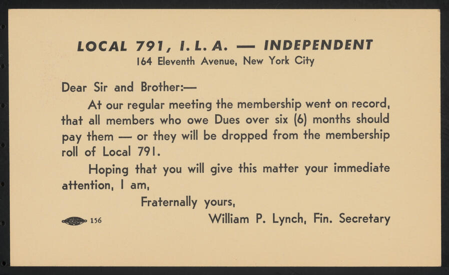 Sample Ballot International Longshoremen's Association Local 791 - AFL-CIO