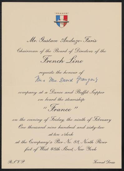 "La Nuit de France" a Gala Dinner and Dance Festival of French Elegance on board the S.S. "France"
