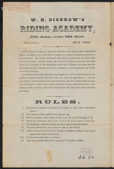 [William Henry Disbrow outside the Disbrow Riding Academy.]