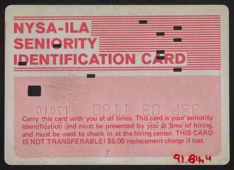 NYSA-ILA Seniority Identification Card