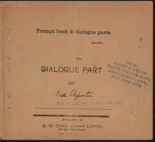 Stage Manager's Cue Sheet, "Forty-five Minutes from Broadway"
