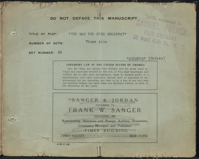 "The Man Who Owns Broadway" - Sylvia Bridwell