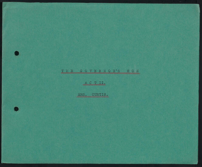 The Governor's Son. Mrs. Benjamin Curtis. Act I.