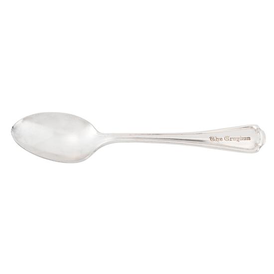 Silver coffee spoon made for the Croydon Hotel with egg-shaped bowl and upturned threaded handle with shaped tip. Inscription: On handle obverse: The Croydon. Mark: On handle reverse: MED CO. A1.