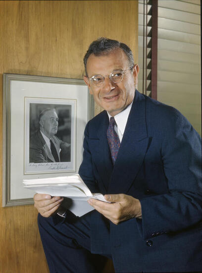 [David Dubinsky talking with John Brophy and Sidney Hillman.]