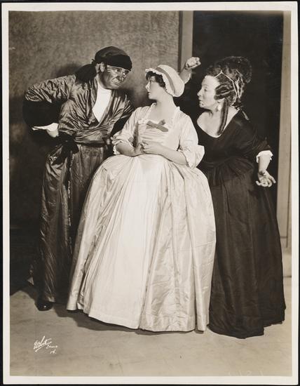 [Arthur Wynn as Peachum, Sylvia Nelis as Polly Peachum, and Lena Maitland as Mrs. Peachum "The Beggar's Opera".]