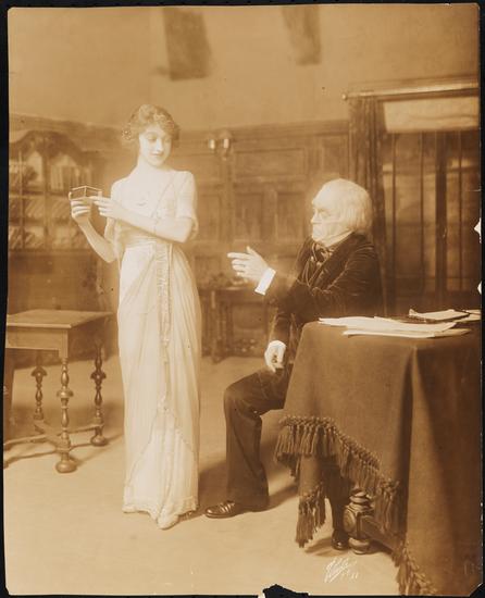 [John Harwood as Ruddock, Cyril Maude as Mr. Andrew Bullivant (Grumpy), and Maud Andrew as Susan in "Grumpy".]