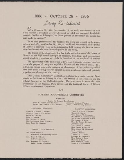 Banquet Commemorating the Dedication of the Statue of Liberty