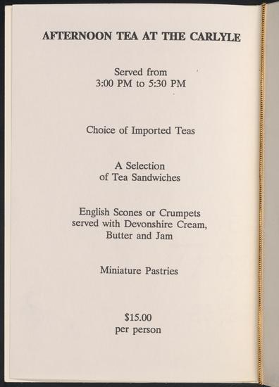 [The Carlyle afternoon tea.]