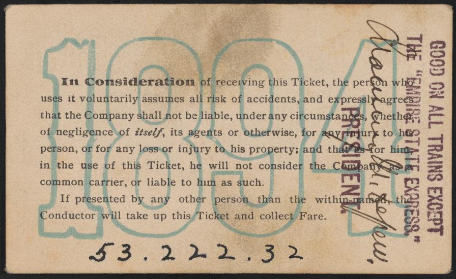 New York Central & Hudson River R.R. Wagner Palace Car Co. Dining Service