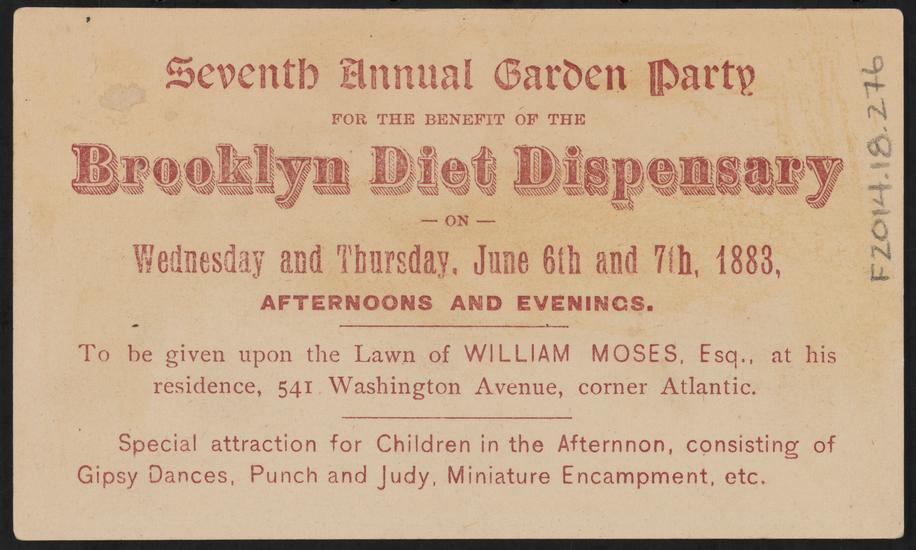 Seventh Annual Garden Party for the benefit of the Brooklyn Diet Dispensary