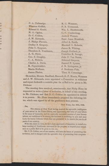 [Invitation to complimentary dinner to Charles Dickens given by the Press of the United States on April 18, 1868.]
