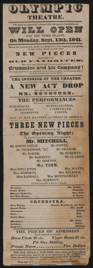 Mitchell's Olympic Theatre. On Monday evening, December 27, 1841, the entertainments to commence with the musical comedy called "The Two Figaros"