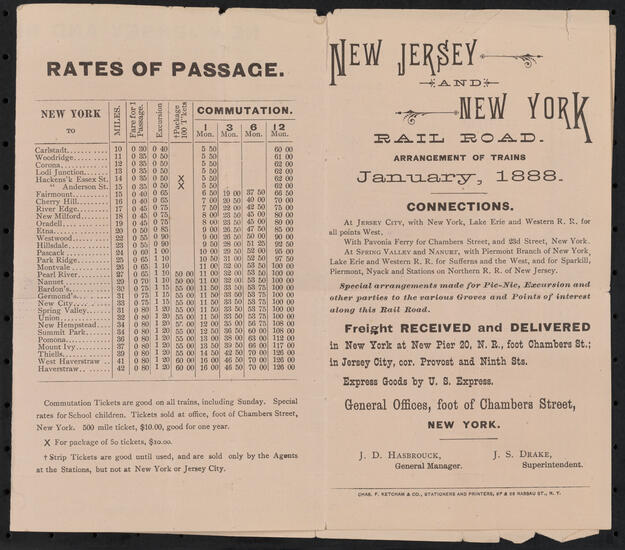 New York and Harlem Rail Road Sunday Arrangement
