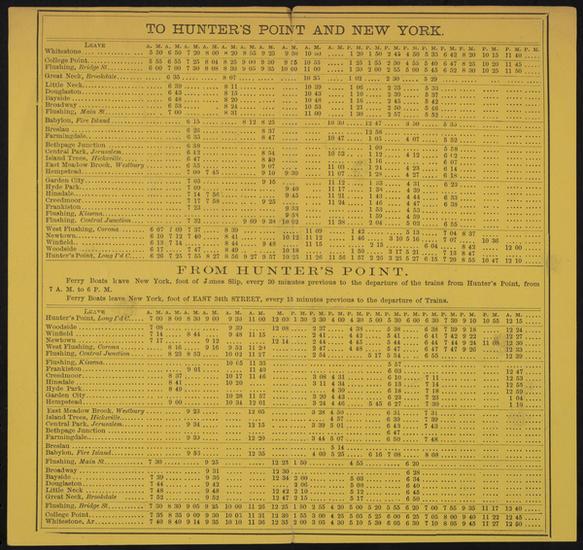 Flushing & North Side Railroad and Central Railroad of Long Island Winter Arrangements