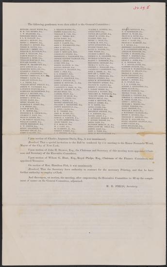 The Ball in Honor of the Prince of Wales [Allotment of tickets for members of the General Committee.]