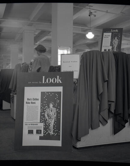 Bloomingdale's [Display in Bloomingdale's featuring a mannequin with a coat and "As Seen in LOOK Magazine" posters surrounding the display.]