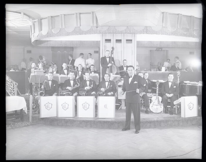 Guy Lombardo [Guy Lombardo and family seated around the fire place.]