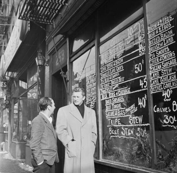 The Bowery--Actor Kirk Douglas Tours the City [Sammy's Bowery Follies.]