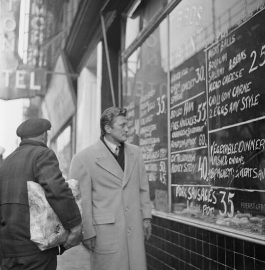 The Bowery--Actor Kirk Douglas Tours the City [Sammy's Bowery Follies.]