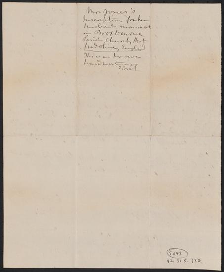 Undated epitaph by Anne De Lancey Jones for Thomas Jones