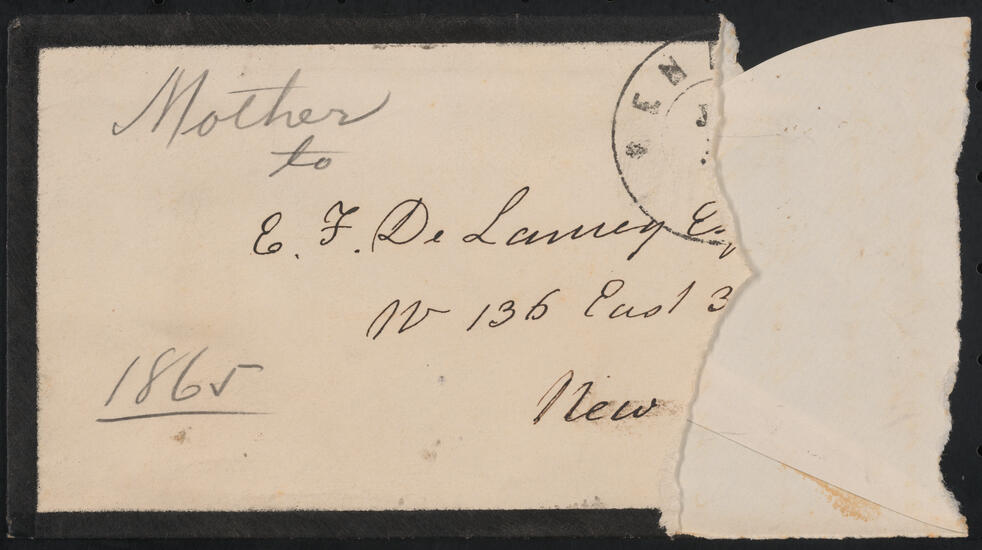 Envelope for letter from Frances Munro De Lancey to Frances (Fanny) Munro De Lancey, February 20, 1862