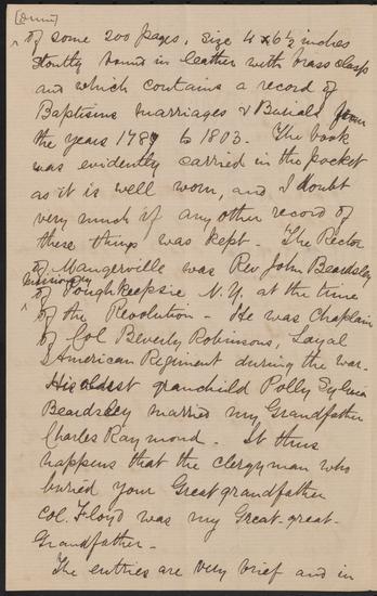 Letter from W. O. Raymond to Edward Floyd De Lancey, December 3, 1891