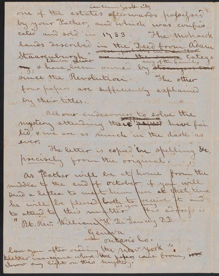 Letter from Edward De Lancey to Lieutenant Colonel De Lancey, September 10, 1848