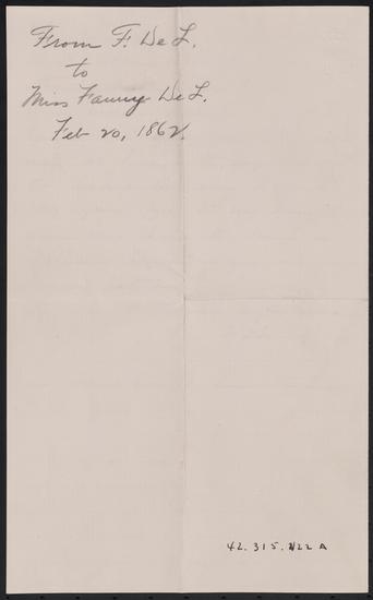 Letter from Frances Munro De Lancey to Frances (Fanny) Munro De Lancey, February 20, 1862