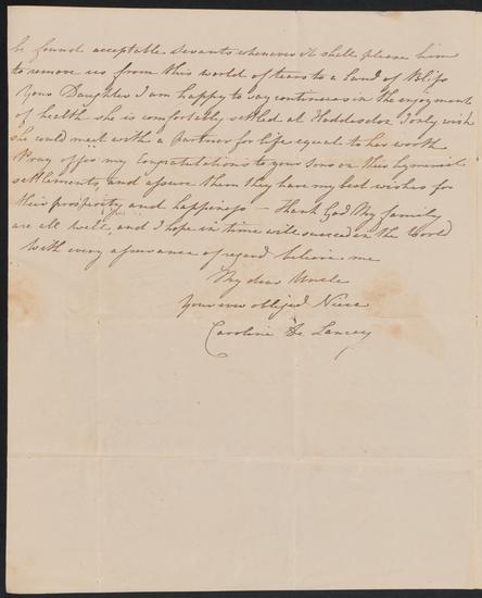 Letter from Caroline Carey De Lancey to John Peter De Lancey, February 1, 1820
