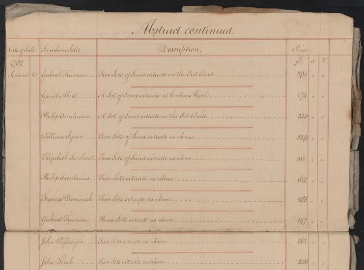 An account of lands late the property of James De Lancey, sold by Isaac Stoutenburgh and Philip Van Cortlandt, Commissioners of Forfeitures for the Southern District of New York, February 4, 1785