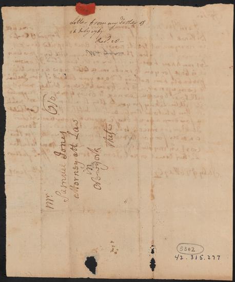 Letter from William Jones to Samuel Jones, July 29, 1771