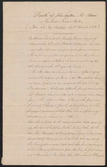 Letter to Anne Charlotte McAdam, November 30, 1836