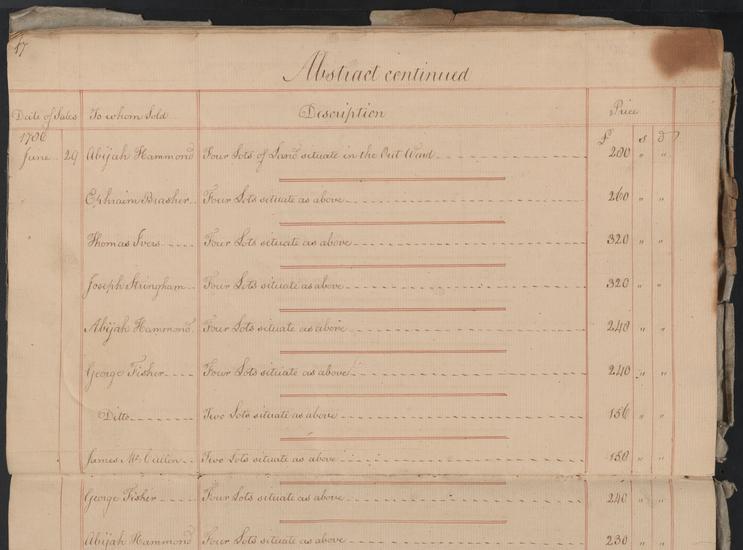 An account of lands late the property of James De Lancey, sold by Isaac Stoutenburgh and Philip Van Cortlandt, Commissioners of Forfeitures for the Southern District of New York, February 4, 1785