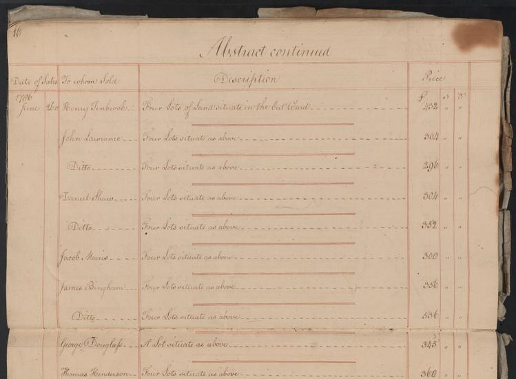 An Abstract of Sales of the Forfeited Estate of James De Lancey in the Southern District of the State of New York for Bills of the New Emission or Specie