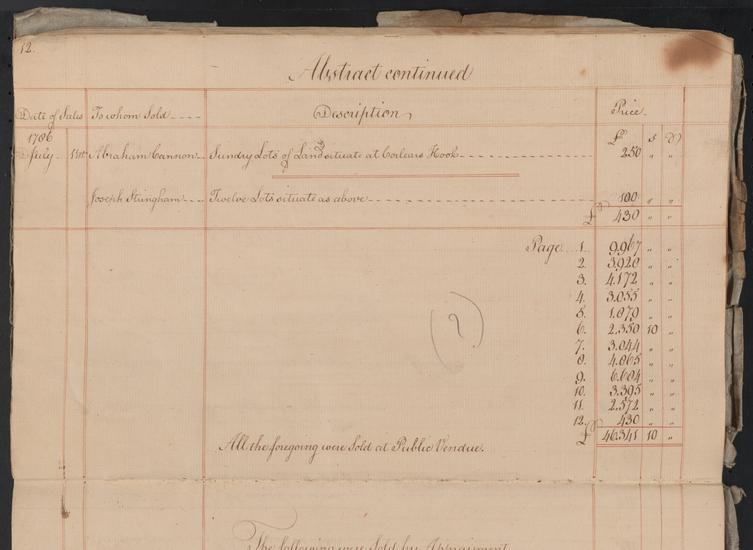 An Abstract of Sales of the Forfeited Estate of James De Lancey in the Southern District of the State of New York for Bills of the New Emission or Specie