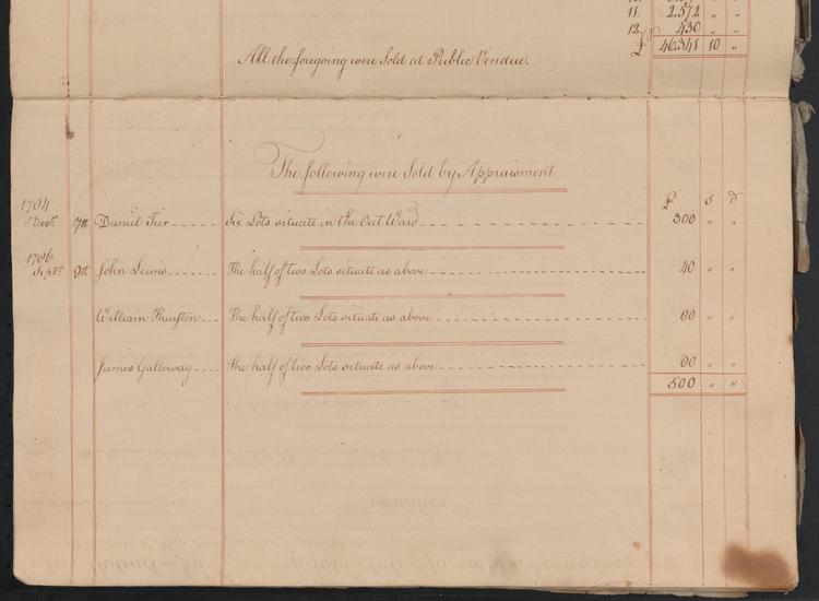 An account of lands late the property of James De Lancey, sold by Isaac Stoutenburgh and Philip Van Cortlandt, Commissioners of Forfeitures for the Southern District of New York, February 4, 1785