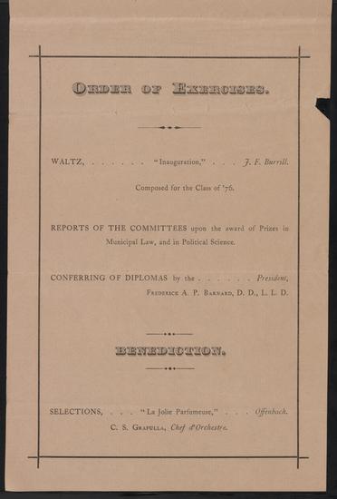 The One Hundred and Thirtieth Commencement of Columbia College, Schools of Arts, Mines and Political Science